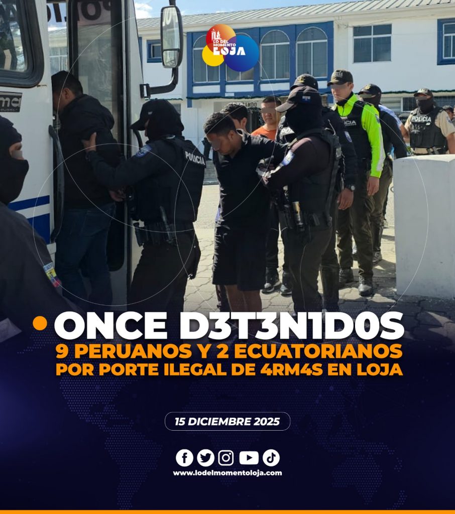 Peruanos y ecuatorianos detenidos tras operativo en Loja, por porte ilegal de armas.