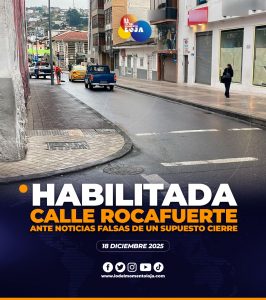 Calle Rocafuerte está habilitada anuncian autoridades.