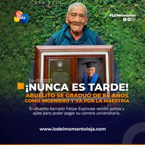 #Internacional | Nunca es tarde para prosperar. Un abuelito de 84 años de nombre Felipe Espinosa se graduó de ingeniero...