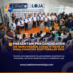 Renovación total o Reto 33 presento oficialmente sus precandidatos para Loja. Con una programación llena de alegría e intervenciones musicales,...