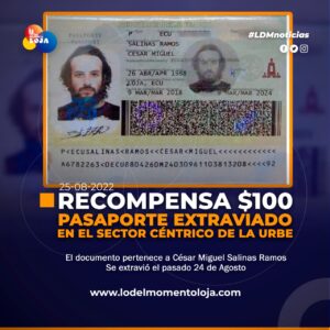 https://fb.watch/f7I7xlsEZz/ #Loja | Documento extraviado en Loja. El pasado 24 de Agosto del 2022, en el casco céntrico de Loja,...