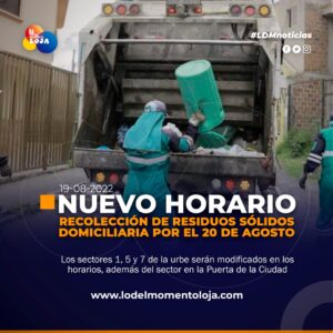 #Loja | Se adelanta recolección de residuos sólidos domiciliaria el 20 de agosto. Por motivo de la llegada de la...