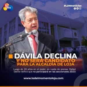 #Loja | Dávila no participará en las seccionales 2023. El Ing. Rafael Dávila Egüez actual Prefecto de la provincia de...