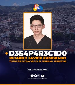 😱🕵🏻♂️🆘 ¡Máxima difusión! El joven Ricardo Javier Zambrano Cuenca de 24 años de edad, fue reportado como d3s4p4r3c1d0 en Loja,...