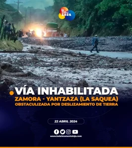 🚧🪨🛣️ ¡Tome precauciones! A la altura del sector La Saquea, en la vía Zamora - Yantzaza se registró un deslizamiento...