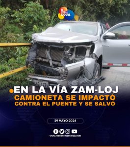 🛻🌉🍀¡Susto con suerte! En la vía Zamora-Loja, por el sector de Sabanilla, una camioneta Toyota Hilux con placas de Loja...
