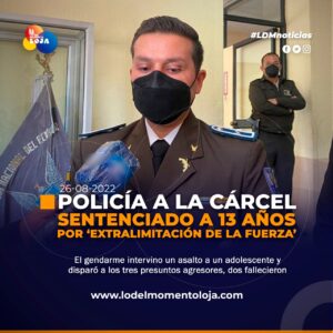 Corte de Chimborazo aumenta a 13 años la sentencia del policía Santiago Olmedo. La sala penal de la Corte Provincial...