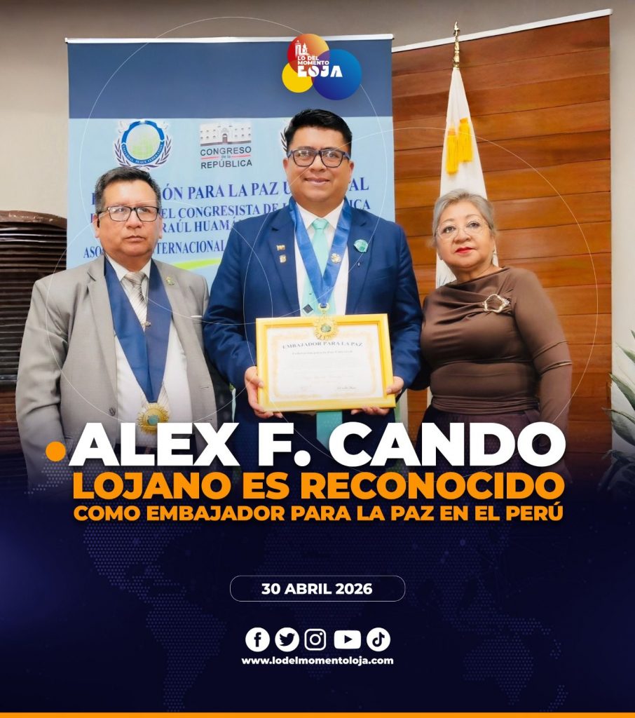 Lojano Alex Fernández Cando es reconocido como Embajador para la Paz en el Congreso del Perú