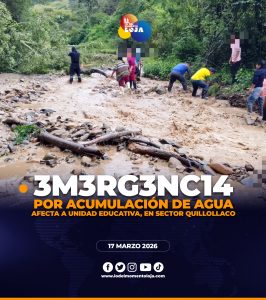 Desbordamiento de quebrada, afecta a una unidad educativa en sector Quillollaco.