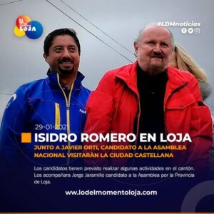 #Loja | Isidro Romero, candidato presidencial visita Loja El día de mañana 30 de enero de 2021, el candidato presidencial...
