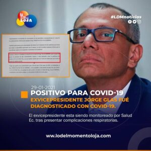 #Nacional | El exvicepresidente, Jorge Glas, da positivo para COVID-19. Su abogado, Harrison Salcedo, confirmó hoy, 29 de enero, que...