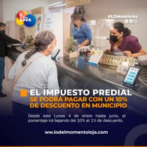 Loja | El Municipio de Loja inició el cobro del impuesto predial con descuento Desde hoy lunes 04 de enero...