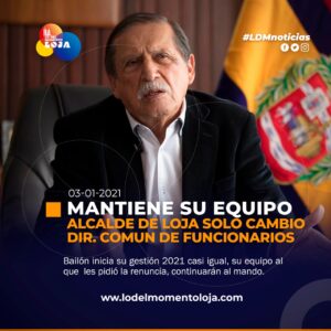 #Loja | Alcalde de Loja ha ratificado a casi todo su equipo de trabajo en sus cargos. El pasado 8...
