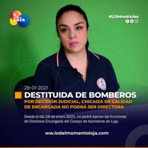 #Loja | Chicaiza destituida del Cuerpo de Bomberos. María Eliza Chicaiza, recibió el encargo de la Dirección Administrativa del Cuerpo...