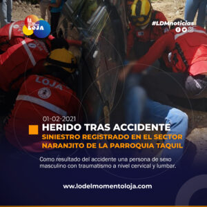 #Loja | Accidente de tránsito deja un ciudadano herido. Personal de Cuerpo de Bomberos de la estación Chantaco, atendieron...