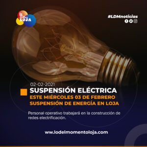 #Loja | Suspensión de energía eléctrica programada para este día miércoles 03 de Febrero 2021. Por motivo de pruebas en...