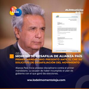 #Nacional | Presidente Lenín Moreno se desafilia del movimiento político Alianza PAIS. La decisión se da en medio de un...