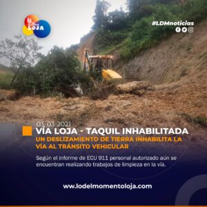 ⚠ Vía Inhabilitada ⚠ ECU911, informa que a vía Loja - Taquil se encuentra inhabilitada al tránsito vehicular debido...
