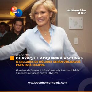 #Guayaquil | Comprará 3 tipos de vacunas contra el COVID19. La alcaldesa de Guayaquil, Cynthia Viteri, anunció el miércoles 3...