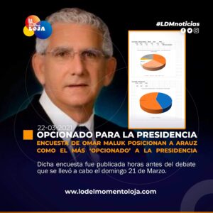 #Ecuador |Encuesta posicionan Arauz como el opcionado a la presidencia. El consultor político y catedrático universitario, Omar Maluk, público un...