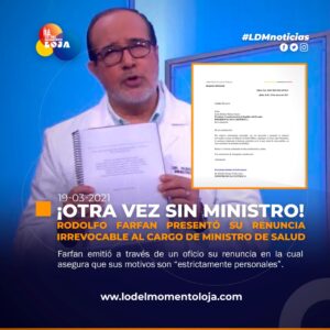 #Ecuador | Ministro de Salud renuncia del cargo. El medio digital La Posta, reveló está mañana una lista de los...