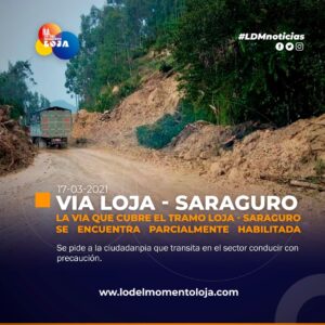 #Loja | Vía parcialmente habilitada. Ecu 911 informa que la vía Loja - Saraguro se encuentra habilitada parcialmente al tránsito...