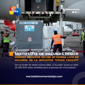 #Internacional | Ecuador recibe sexto lote de vacunas de Pfizer y el primero de la iniciativa Covax Facility Según el...