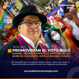 #Loja | Movimiento Pachakutik promoverá el voto nulo. En medio de la campaña electoral, el asambleísta electo Manuel Medina ratificó...