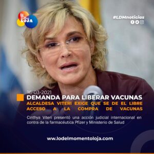 #Guayaquil | Alcaldesa Viteri interpone demanda para liberar vacunas Hoy, la Alcaldesa de Guayaquil Cynthia Viteri, presento una acción judicial...