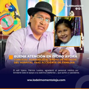 #Loja | Concejal agradeció la buena atención médica. Tras sufrir un accidente un familiar del concejal de Loja, Patricio Lozano,...