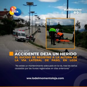 #Loja | Accidente deja un herido en Loja. El conductor de una motocicleta que transitaba por la vía de integración,...