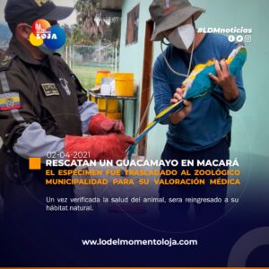 #Loja | Guacamayo rescatado en Macará. Personal del Medio Ambiente (UPMA), lograron rescatar a una especie de guacamayo ararauna que...