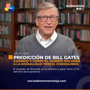 #Internacional | Covid-19 terminaría en 2022 según Bill Gates. El fundador de Microsoft y el creador del sistema operativo de...