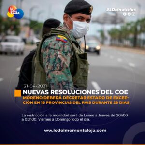 #Ecuador | Nuevas resoluciones del COE Nacional. Tras un poco más de hora y media de espera el COE Nacional...