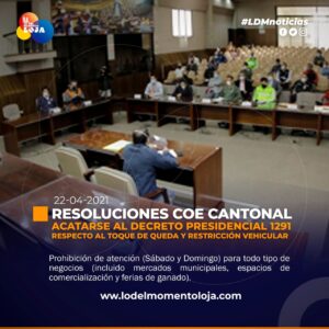 #Loja | Resoluciones COE Cantonal Loja. Efraín Muñóz, Coordinador General del Municipio de Loja informó sobre las resoluciones tomadas por...