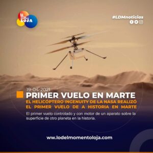 #Internacional | El pequeño helicóptero Ingenuity, de la NASA, hizo historia al realizar el primer vuelo controlado y con motor...