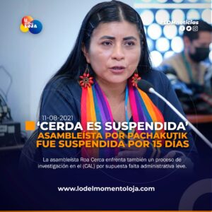 #Ecuador | Suspensión de asambleísta por Pachakutik. El movimiento político Pachakutik (PK) sancionó con 15 días de suspensión de sus...