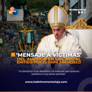 #Internacional | La Conferencia Episcopal Ecuatoriana compartió en su cuenta de Twitter un mensaje enviado por el papa Francisco a los afectados por el aluvión del...