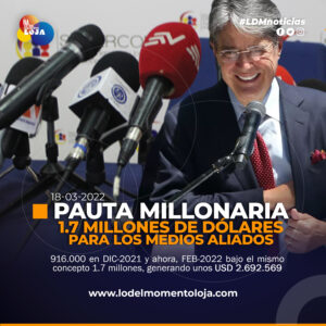 En febrero 2022 se adjudicó un contrato de USD 1.776.569,30 por concepto de “Servicio publicitario de creatividad, producción y difusión...