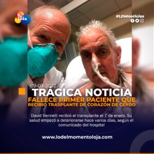 #Internacional | Fallece primer paciente que recibió un trasplante de un corazón de cerdo. El primer paciente que recibió un...