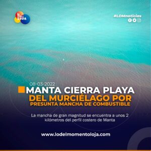 #Nacional |Una enorme mancha, al parecer de combustible, fue detectada a unos 2 kilómetros del perfil costero del cantón Manta,...