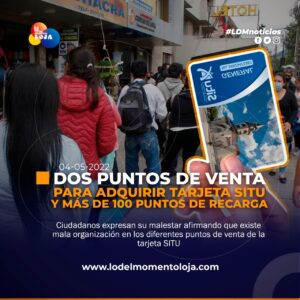#Loja | Dos puntos de venta para adquirir la tarjeta SITU y más de 100 puntos de recraga distribuidos en...