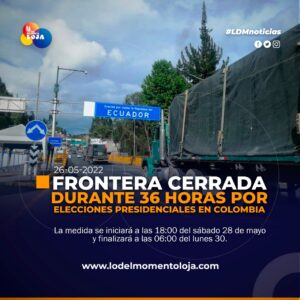 #Loja | La frontera entre Ecuador y Colombia se cerrará desde las 18:00 de este sábado 28 hasta las 06:00...
