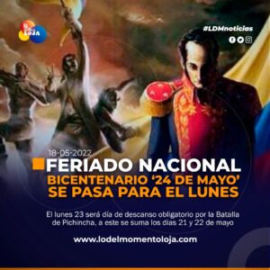 #Nacional | El último feriado del primer semestre del año será por la Batalla de Pichincha. El feriado por esta...