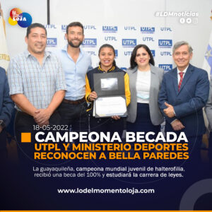 Guayaquil (Guayas). La campeona mundial juvenil de halterofilia, Bella Paredes, recibió una beca estudiantil del 100% por parte de la...