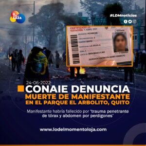 #Ecuador | CONAIE denunció el fallecimiento de un manifestante en Quito. El 23 de junio, se cumplió el onceavo día...