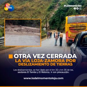 🔴Atención | Se informa a la ciudadanía en general que la vía Loja-Zamora se encuentra cerrada debido a deslizamientos de...