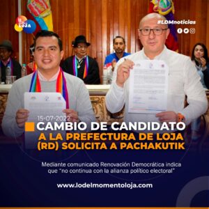 #Loja | Renovación Democrática solicita a PK el cambio de candidato Mediante comunicado la noche de ayer, Renovación Democrática solicitó...