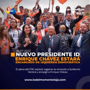 #Nacional | CNE reconoce a Enrique Chávez como presidente nacional de Izquierda Democrática lista 12 El pleno del CNE resolvió...