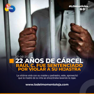 Arenillas (El Oro), 30 de agosto de 2022.- A veintidós años de pena privativa de libertad fue sentenciado Raúl C., como...